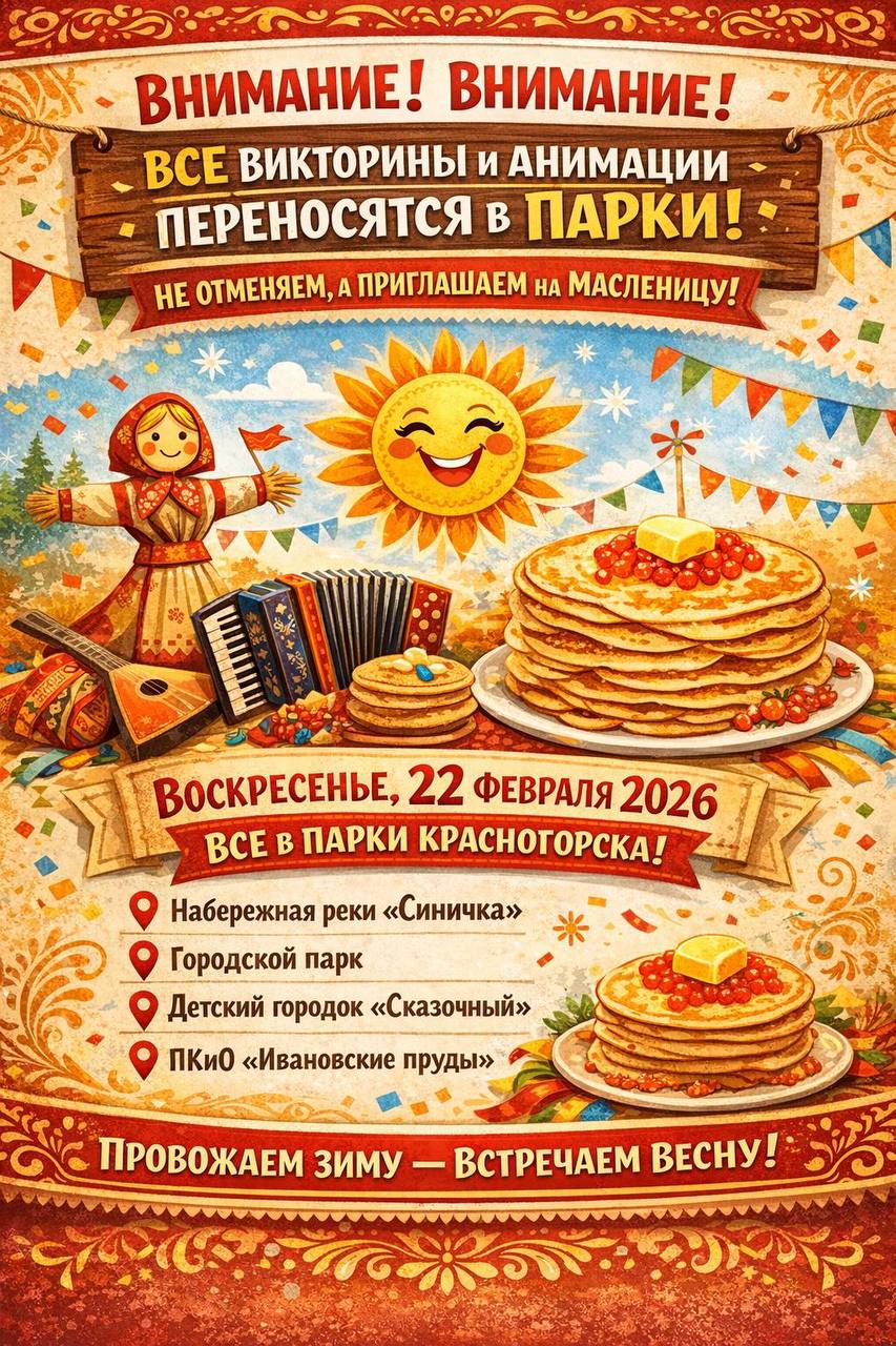Давайте вместе провожать зиму и встречать весну! Ждем вас на Масленице в парках Красногорска!🥞