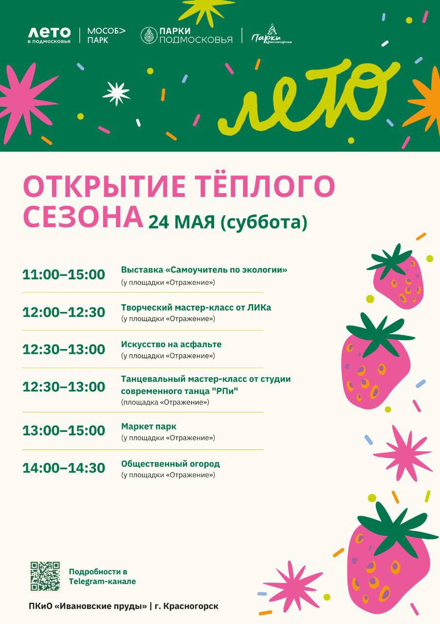 Друзья, 24 мая еще откроем теплый сезон в парках Красногорска!