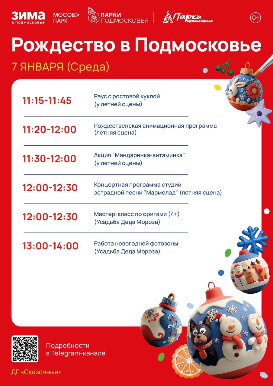 7 января в наших парках пройдут: концертные программы, акции, рождественские анимационные программы, мастер-классы и ещё многое другое!☃️