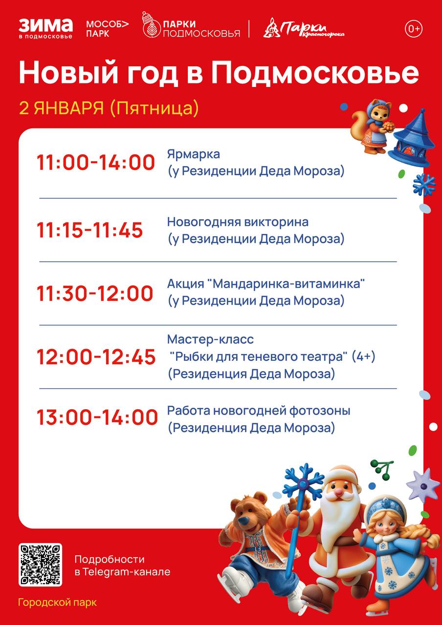 2 января в наших парках пройдут: анимационные программы, новогодние викторины, акции, ярмарки, мастер-классы и ещё многое другое!☃️