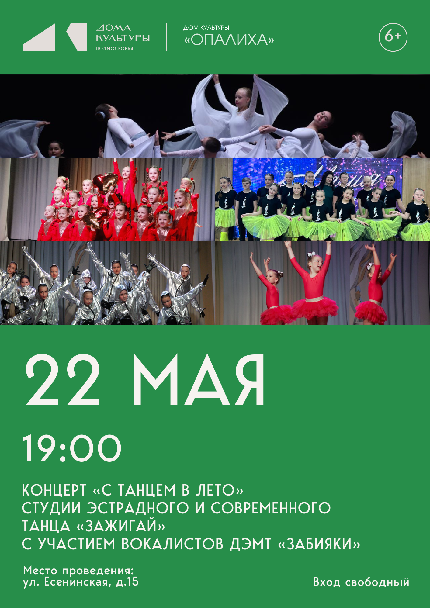 Приглашаем всех-всех-всхе жителей и гостей г.о. Красногорск на яркий концерт «С ТАНЦЕМ В ЛЕТО» студии эстрадного и современного танца «Зажигай» с участием вокалистов Образцового коллектива ДЭМТ «Забияки».